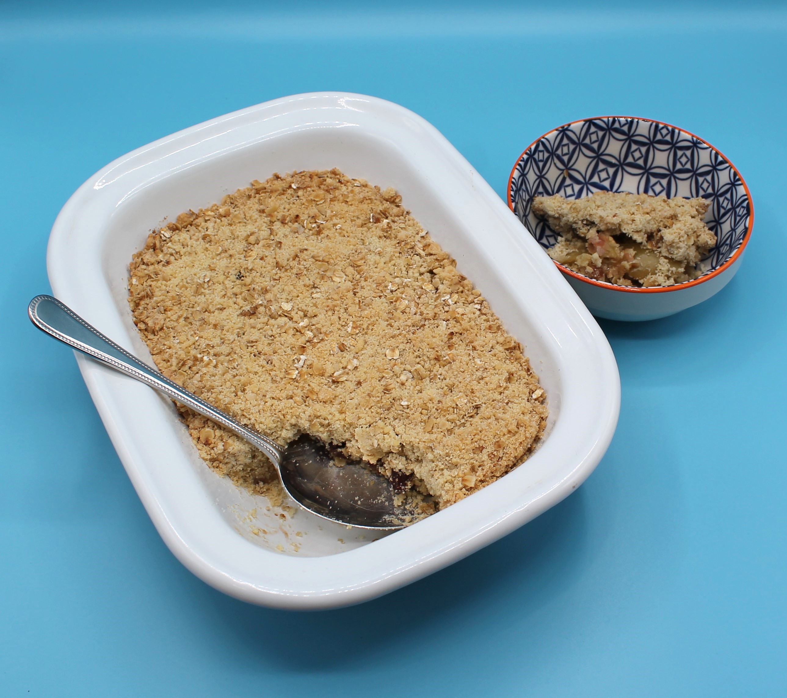 - Focus on fibre: Use wholemeal flour for the crumble topping to increase the fibre content.