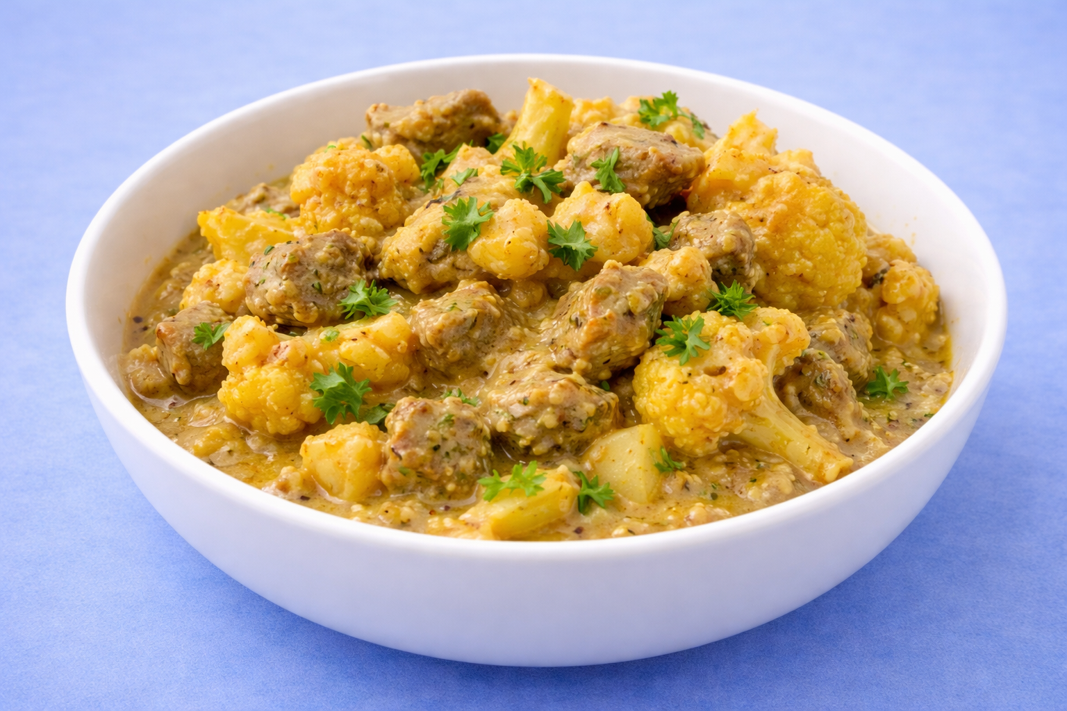 5. Add the lamb and cauliflower, cover and slowly cook for about 10 minutes.