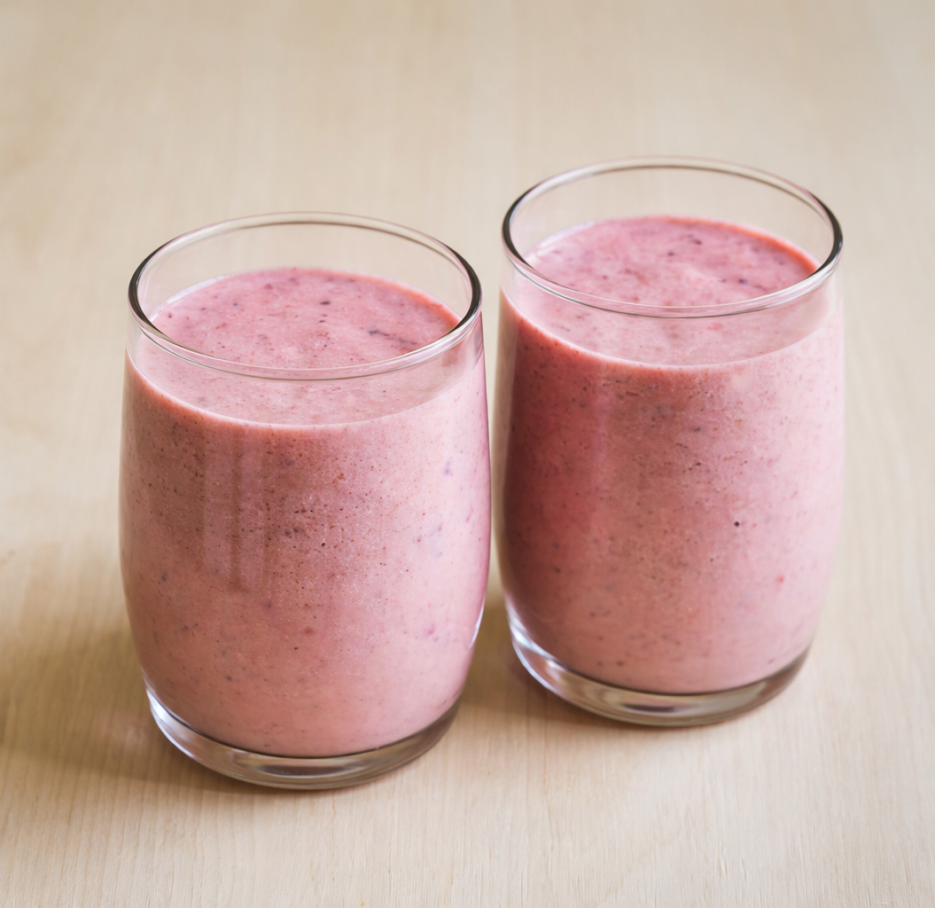 - Pour the smoothie into two glasses.