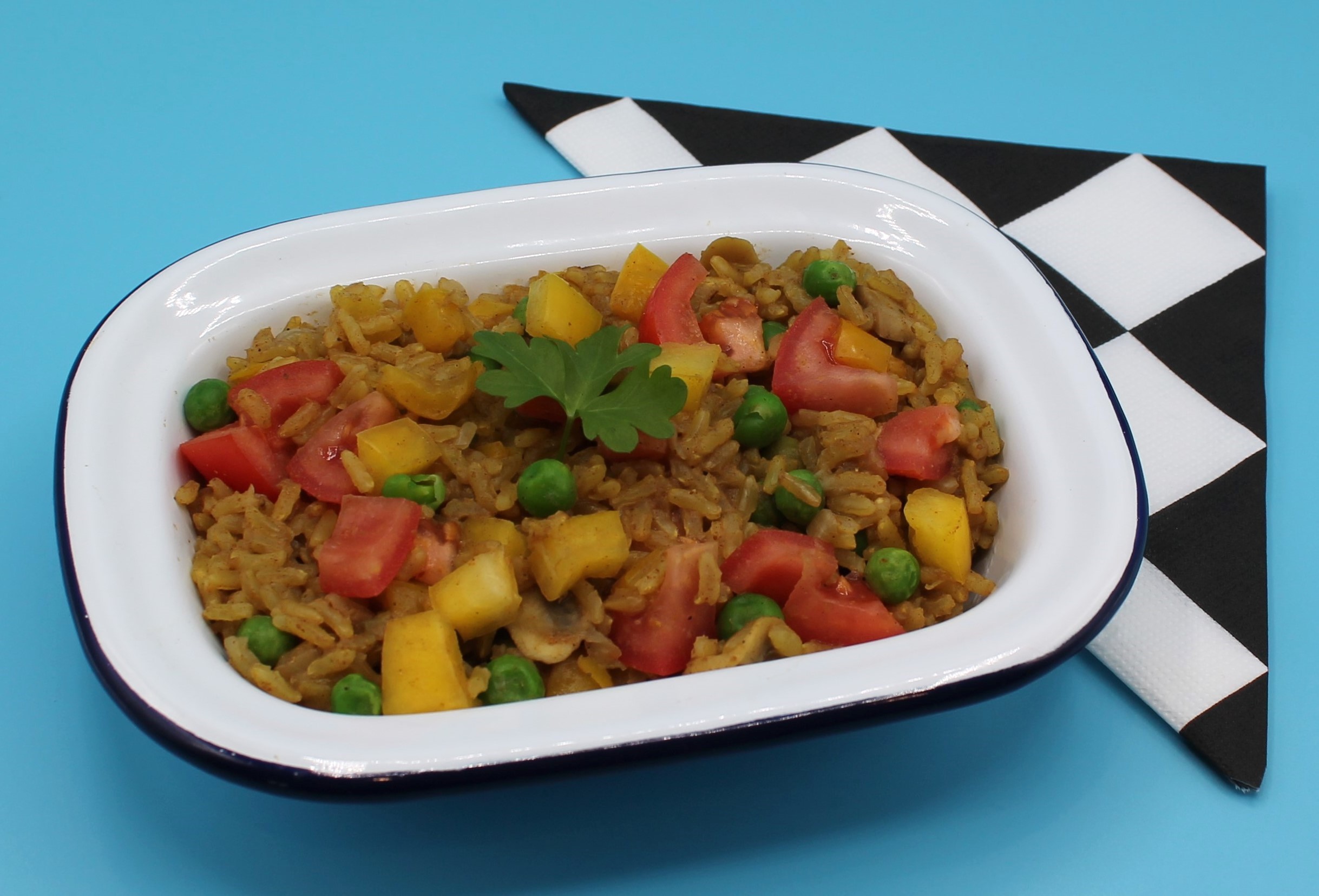 - To serve place the rice in a bowl and sprinkle the chopped tomato on top.