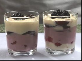 - Place 10 raspberries into a glass and spoon over half of the black cherry yogurt.