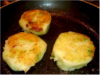 - Using a large metal spoon, make ‘rounds’ of bubble and squeak.
