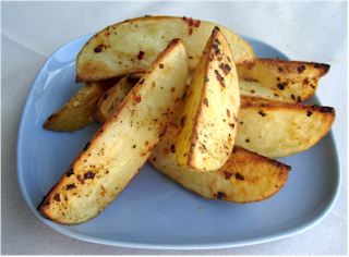 - Cut potatoes into wedges. Put into a poly bag or mixing bowl.
