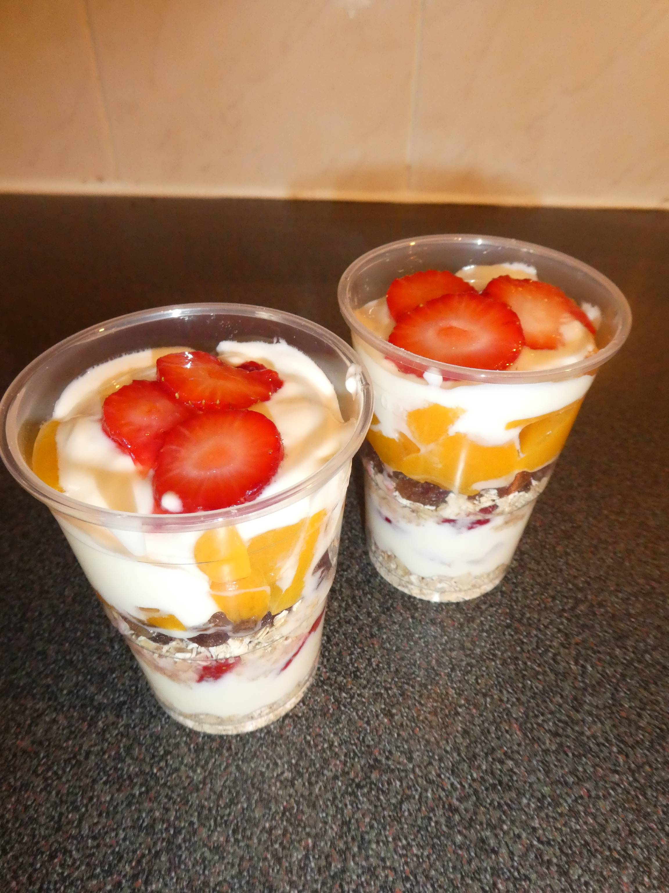 - Divide the remaining yogurt between the two cups.