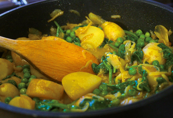 5. Add the potatoes to the pan, cover and cook until they are tender – about 10 minutes